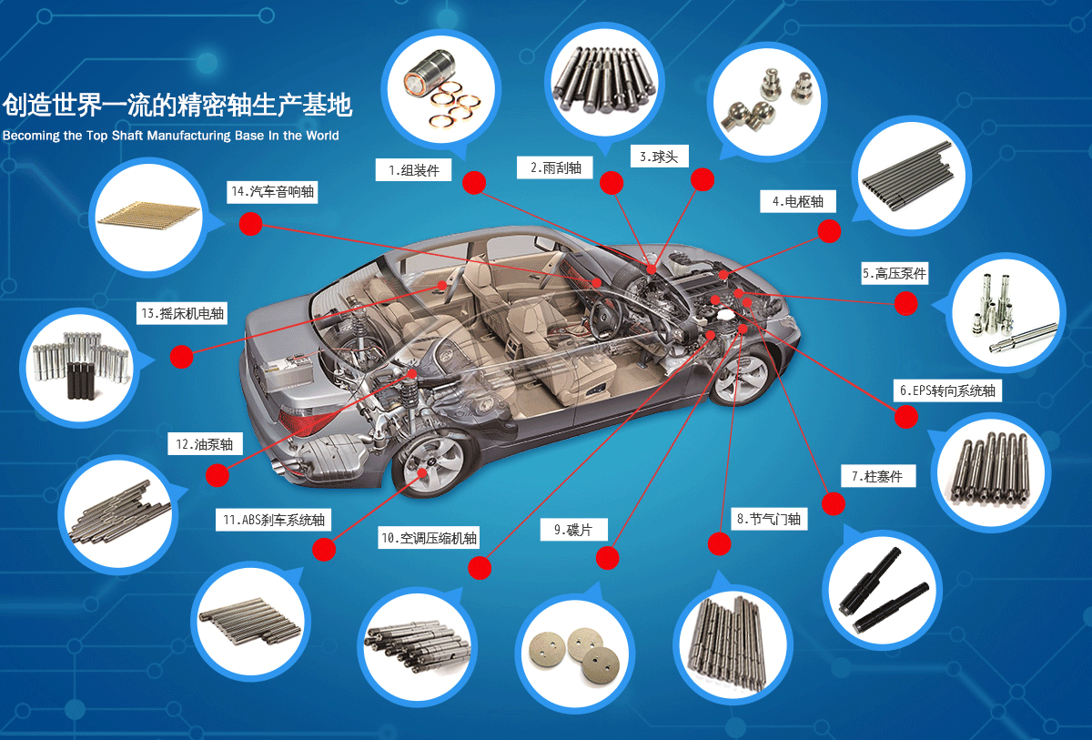 公司著眼于發(fā)展、創(chuàng)新,每年均投入大量人力和物力進行新產品研發(fā)及技術改造,當前公司產品包括各類汽車軸、精密馬達軸、工業(yè)零部件等近20個系列千余產品,遠銷世界各地,深受客戶信賴。